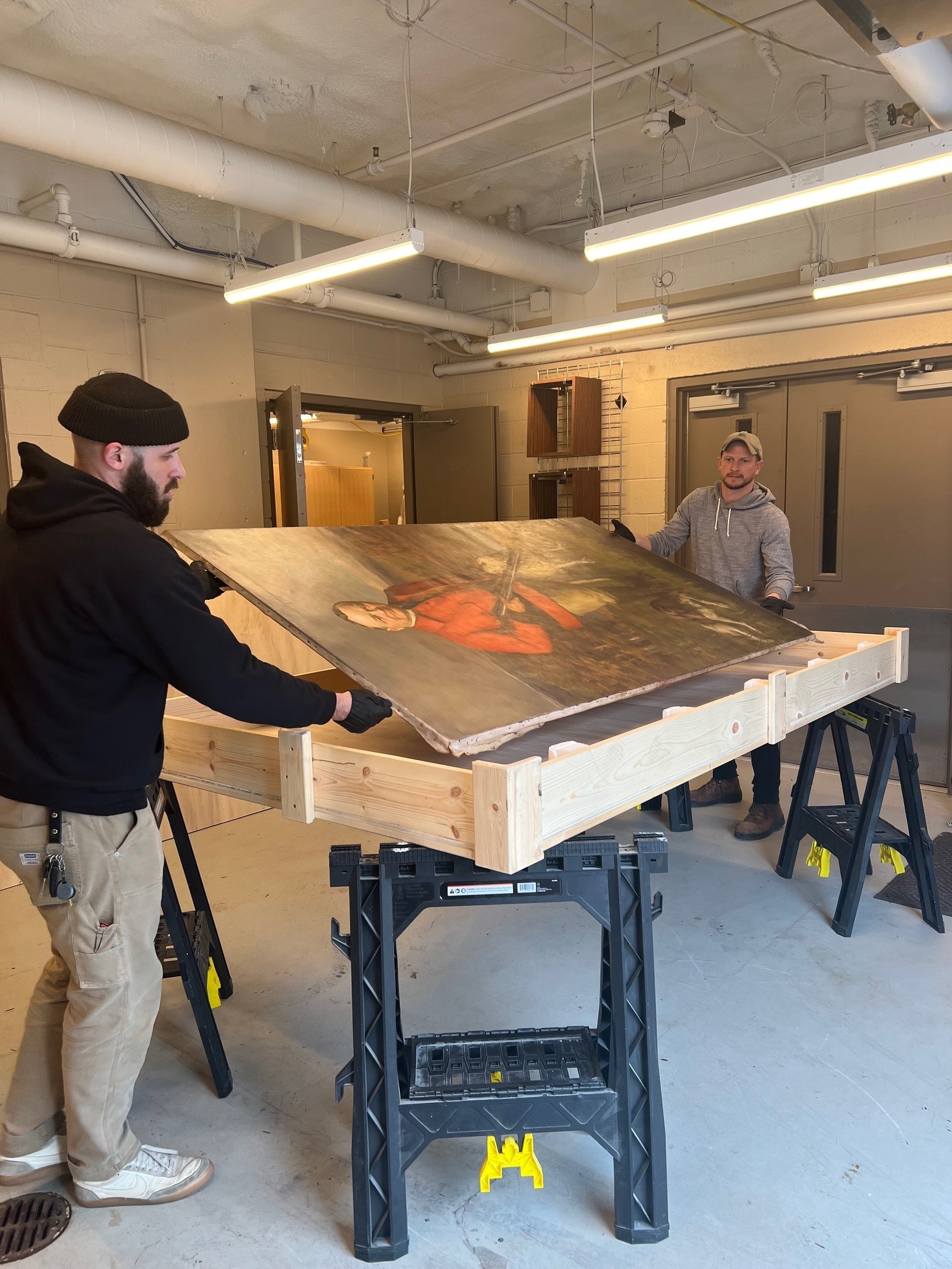 This portrait just returned from conservation at the studio of Julian Baumgartner. Over the course of a few months, the portrait was cleaned and lined - meaning that a support was added to the canvas to help strengthen it. Removal of the old varnish layer revealed the bright colors of the landscape behind the governor. These conservation choices have helped to maintain the original intent of the portrait while protecting it from damage and ensuring its longevity. Regular conservation of the artwork in the portrait collection is just one way that the Capitol acts as a responsible steward of the Michigan’s artistic heritage.